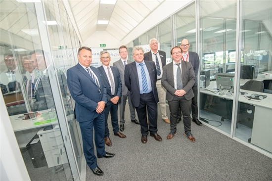 Pictured (left to right): Craig Humphrey, Peter Butlin (Warwickshire County Council) Jeremy Wright MP, Peter Anastasi, Bob Gregson (Rural Payments Agency), Dirk Schafer, Dr Paul Milne (WMG).