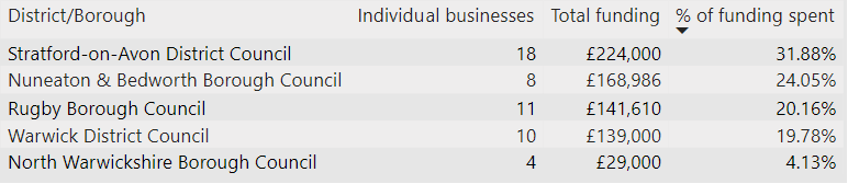 In 2023 alone we have pledged over £700,000 to businesses in Warwickshire. This way we supported 108 different apprentices in 51 different businesses. Stratford-on-Avon District Council has been the biggest advocate for apprenticeships, accessing £224,000 with Nuneaton & Bedworth next with £168,000.
