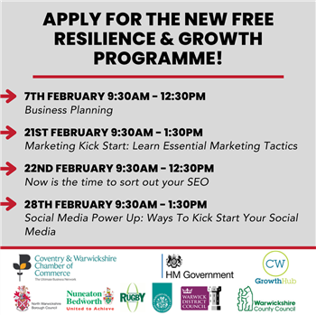 Find out what other support is available to your business by calling Coventry and Warwickshire Growth Hub on 0300 060 3747 or visit the Coventry and Warwickshire Growth Hub website at https://www.cwgrowthhub.co.uk